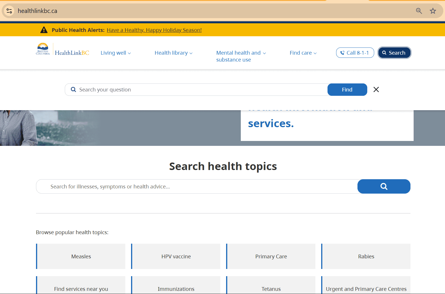 Our client, HealthLinkBC is a core resource for citizens of British Columbia to find health-related answers. A popular tool is 8-1-1 nurse phone line that may connect citizens to the HealthLinkBC website.